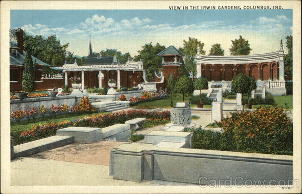 Front: VIEW IN THE IRWIN GARDENS, COLUMBUS, IND. 51181 Back: MADE BY CURT TEICH & Co., INC., CHICAGO, U.S.A. 20