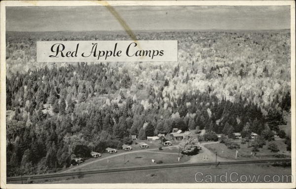Front: Red Apple Camps ат Back: RED APPLE CAMPS F. L. Hewey, Prop., Macwahoc, Maine Located on U. S. Highway No. 2 72 Miles North of Bangor Tel. Kingman 7-3 223—Published by Luther S. Phillips, Box 6, Bangor, Maine