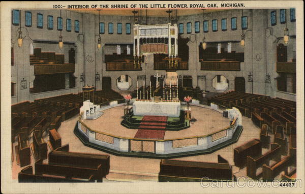 100:-INTERIOR OF THE SHRINE OF THE LITTLE FLOWER, ROYAL OAK, MICHIGAN.