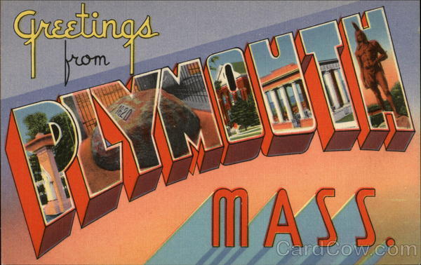 Front: Greetings 20 MASS. Back: 64385 "TICHNOR QUALITY VIEWS" REG. U. S. PAT. OFF. MADE ONLY BY TICHNOR BROS., INC., BOSTON, MASS. PUB. BY SMITH'S INC., PLYMOUTH, MASS.