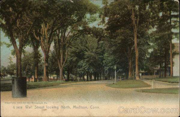 Front: Copyright 1905 by the Rotograph Co G 5408 Wall Street looking North, Madison, Conn. Back: JUN 27 6 DA 1910 CON Stamy Her The Rotograph Co., N. Y., City. (Germany.) N Miss beneviere Kiel RR Yol Day Chio PRIN