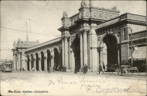 Front: 03 DANIEL. JEWELER Jo Miss onio ans. Sarthe ale The Union Station - Columbris, Back: NERES 1903 UNITEDSTATES OF 70 JUN 13 1 130 1904 1706 FRANKLIN 1790 Mire a donis, a , 168h. State at lic