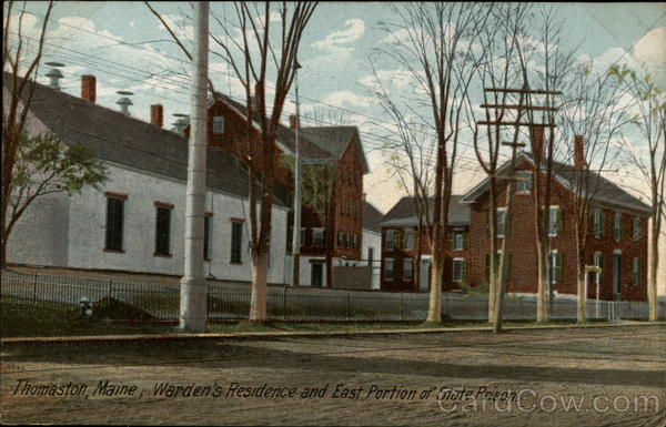 Front: IL Thomaston, Maine, Warden's Residence and East Portion of State Prison Back: Post Card . One Cent for United States, and Island Possessions, Cuba, Canada and THE HUGH C.LEIGHTON CO., MANUFACTURERS, PORTLAND, ME.,U.S.A. 8E