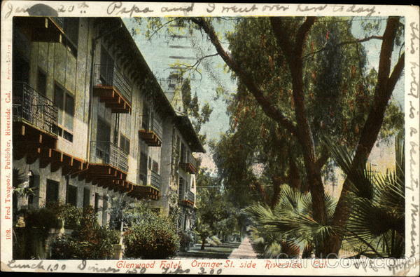 Ench 1,90 Irinn Glenwgod hotel Orange St. side Riverside. Cal.