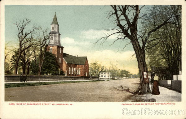 Front: 6255. DUKE OF GLOUCESTER STREET, WILLIAMSBURG, VA, COPYRIGHT, 1902, BY DETROIT PHOTOGRAPHIC CO. Back: and Canada, Foreign, Two Cents.