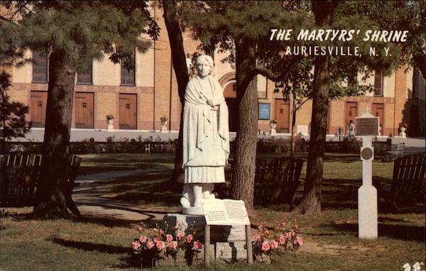 | National Shrine of the North American Martyrs Auriesville, N. Y. Revered by her tribespeople as the "Lily of the Mohawks" the Indian Maiden, Kateri Tekakwitha, is honored here at Auriesville for her life of heroic sanctity. Kateri was declared "Venerable" by Pope Pius XII in 1943 |
