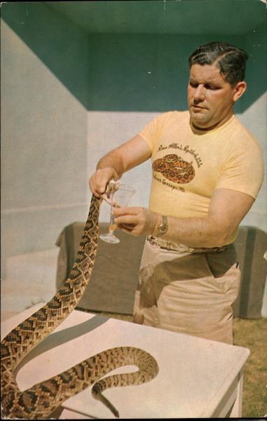 Ross Allen "milking" a Diamond Back Rattlesnake for