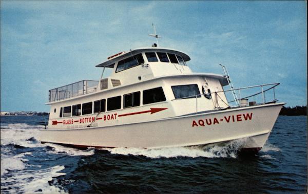 Chesapeake Dock See sections of the 260 miles of living Coral Reef - Sunken Spanish Galleons - Fish and Plant Life - Aboard the all New Glass-Bottom Boat "Aqua-View." Chesapeake Dock, Islamorada, Florida Keys Phone 664-4511