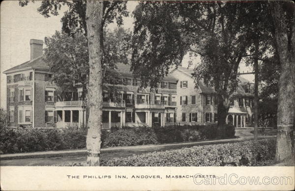 Front: IN THE PHILLIPS INN, ANDOVER, MASSACHUSETTS Back: Messages allowed in this space for THIS SPACE IS EXCLUSIVELY FOR THE ADDRESS Published by the Andover Press, Andover, Mass.