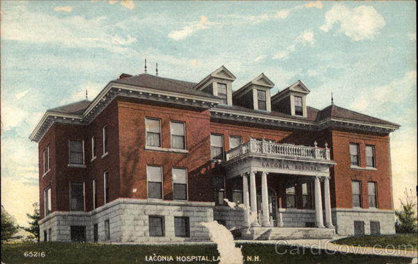 Front: LACONIA HOSPITAL 65216 LACONIA HOSPITAL, LA N.H. Back: Pub. by The Atkinson News Co., Tilton, N. H. No. 2700 Write Message here. Island Mexican 1c. Foreign 2c.