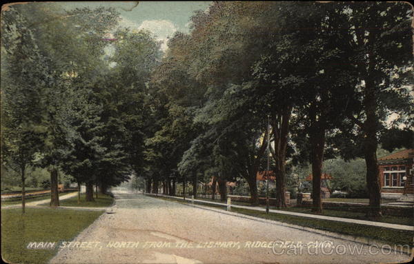 MAIN STREET, NORTH FROM THE LIBRARY, RIDGEFIELD, CONN