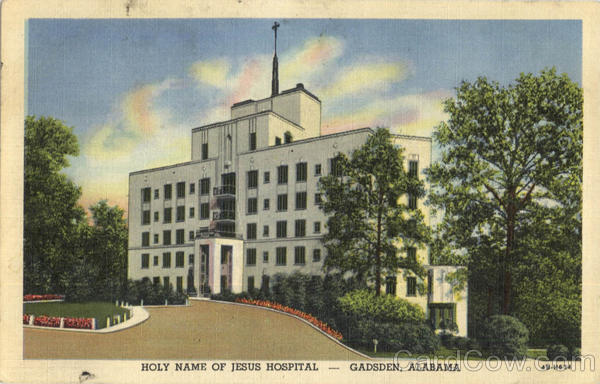 Front: HOLY NAME OF JESUS HOSPITAL GADSDEN, ALABAMA 4B-H634 Back: Holy Name of Jesus Hospital MORAGNE PARK GADSDEN, ALABAMA Conducted by Missionary Servants of the Most Blessed Trinity Turner Mara Childri