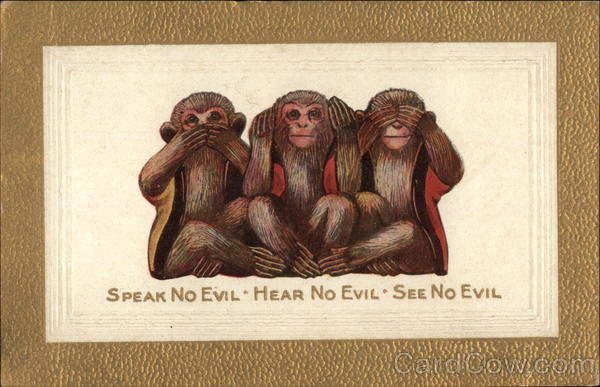 Front: SPEAK NO EVIL HEAR No EVIL SEE No EVIL Back: 17t Copyright, 1909, F. A. Owen Pub. Co., Dansville, N. Y. COMMUNICATION