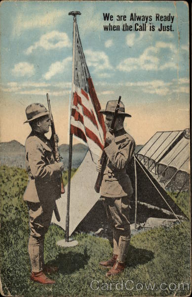 Front: We are Always Ready when the Call is Just. Back: PINTON MAR 14 POST SAN 1918 TRAVIS GRA GEN OENT NO. 615--Soldiers- 16 Des. Ida Miller 7 dy ittwille Ixas THYS SPACE MAY BE USED FOR MESSAGE