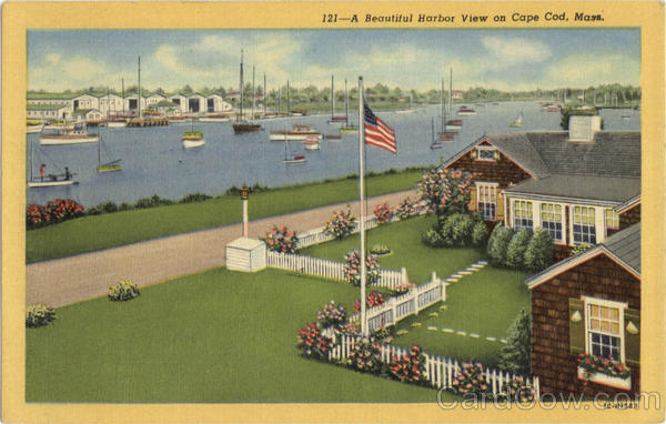 Front: 121-A Beautiful Harbor View on Cape Cod, Mass. IC-HI323 Back: DISTRIBUTED BY E. D. WEST CO., SOUTH YARMOUTH, CAPE COD, MASS.