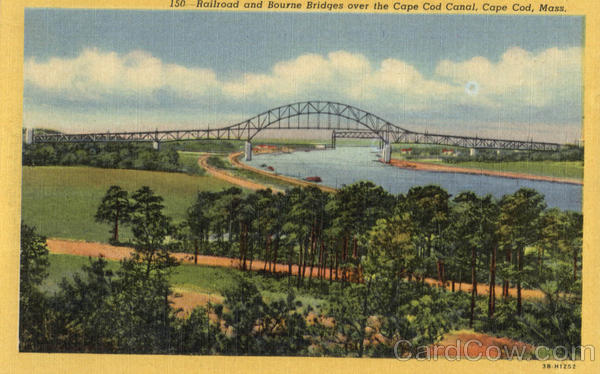 Front: 150 Railroad and Bourne Bridges over the Cape Cod Canal, Cape Cod, Mass. 3B.H1252 Back: DISTRIBUTED BY E. D. WEST CO., SOUTH YARMOUTH, CAPE COD, MASS.