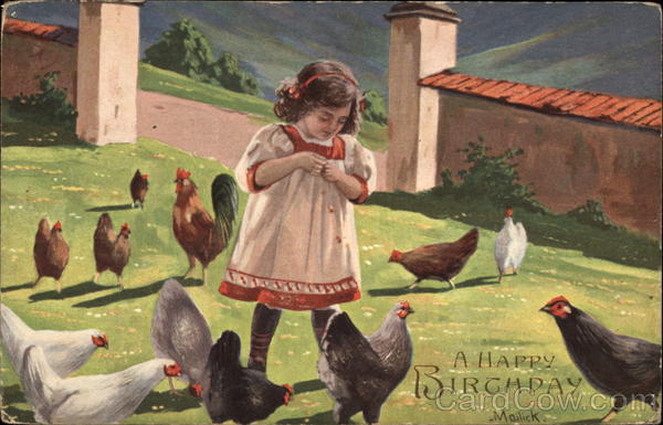 Front: A HAPPY DIRGADAY. BIR Mailick: Back: Post Card - Postkarte - Carte postale Germany. aunt Amanidd nelson Deklas mother Soid Cartes Shively bol