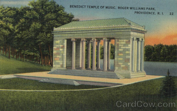 Front: BENEDICT TEMPLE OF MUSIC, ROGER WILLIAMS PARK. PROVIDENCE, R. I. 22 Back: 11652 A "COLOURPICTURE" PUBLICATION, BOSTON 15, MASS., U.S.A. PUB. BY THE RHODE ISLAND NEWS COMPANY, PROVIDENCE. R. I.