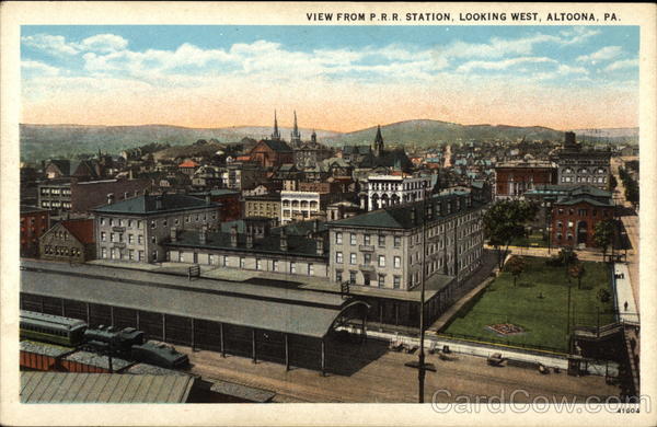 Front: VIEW FROM P.R.R. STATION, LOOKING WEST, ALTOONA, PA. EELEE FEFEE 1 EE BE.PD 41604 Back: PUBLISHED BY 1. ROBBINS & SON, PITTSBURGH, PA. AMERICAN ART IRAS TE