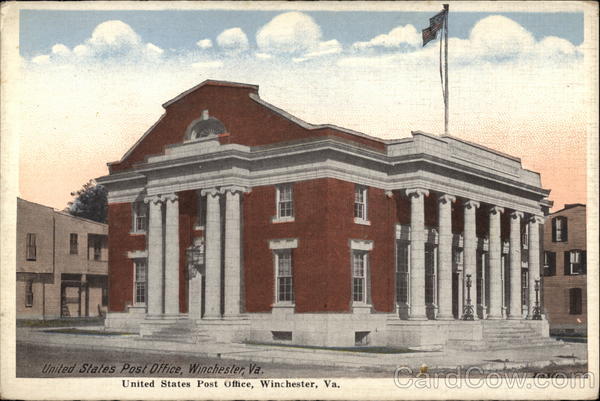 Front: United States Post Office, Winchester, Va. 215 601 United States Post O ffice, Winchester, Va. Back: Pub.' by Williamsport Paper Co., Williamsport, Pa. OF ARTISTIC TRADE MARR ECME