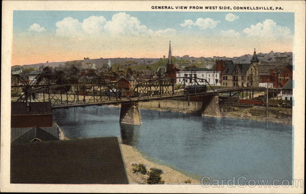 Front: GENERAL VIEW FR OM WEST SIDE, CONNELLSVILLE, PA, Back: FOR WRITING MESSAGES. R-47224 STERUMOM PA Randson PUBLISHED BY I. ROBBINS & SON, PITTSBURGH, PA. 178