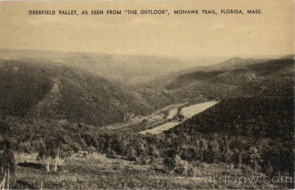 Front: DEERFIELD VALLEY, AS SEEN FROM "THE OUTLOOK", MOHAWK TRAIL, FLORIDA, MASS, Back: Publ. for "The Outlook", Mohawk Trail, Florida, Mass. by Collotype Co., Inc., New York and Elizabeth, N. J.