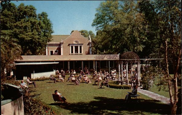 6C-K994 SK.70-SUN NEWS CO., ST. PETERSBURG, FLA. ® ART-CREATION REG.U.S.PAT.OFF. NATURAL COLOR REPRODUCTION -CURTEICHCOLOR DOYLE MEMORIAL GARDEN, OUTDOOR READING AREA, PUBLIC LIBRARY ST. PETERSBURG, FLORIDA "THE SUNSHINE CITY"