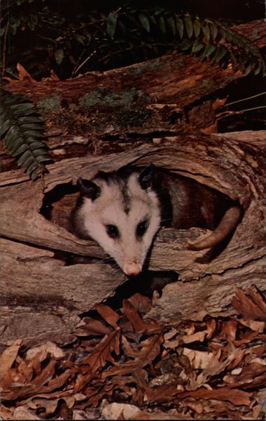 OPOSSUM AT HOME IN LOG