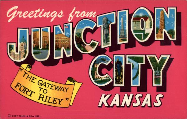 Front: JUNCTION CITY FORT RILEY THE GATEWAY Greetings from ee TO FORT KANSAS 99 RILEY CURT TEICH & CO., INC. Back: JC-12-KANSAS DISTRIBUTING CO., JUNCTION CITY, KANSAS CURTEICHROM REPRODUCTION BY CURTEICH вск 2078