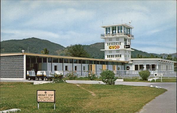 Front: ELEV C 9rT CHUKAI CUSTOMS AIRCRAFT STOP END OF MOVEMENT AREA AIRCRAFT TO HANGAR MUST BE TOWED OR ESCORTED Back: PUB. BY P. M. S. MOHAMED NOORDIN 16, BEACH STREET, PENANG, MALAYSIA Building, Penang. Penang Airport Terminal K 1056