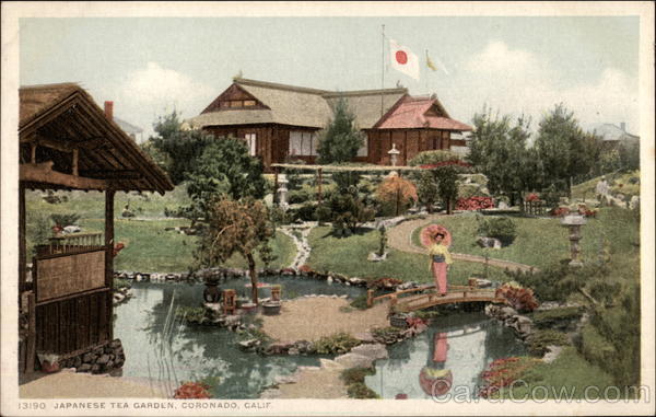 Front: 13190 JAPANESE TEA GARDEN, CORONADO, CALIF. Back: FOREIGN. TWO Malhin and I ment one mer lure me aft- and had tea MADE ONLY BY DETROIT PUBLISHING GO "PHOSTINT" CARD. TRADE MARK - REG. U. S. PAT. OFF. THIS SPACE MAY BE USED FOR MESSAGE.