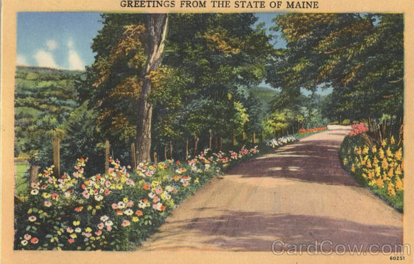 Front: GREETINGS FROM THE STATE OF MAINE 60251 Back: *TICHNOR QUALITY VIEWS" REG. U. S. PAT. OFF. MADE ONLY BY TICHNOR BROS., INC., BOSTON, MASS.