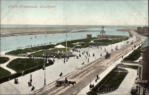 Front: North Promenade, Southport VICT TURKE RUSS BA Back: POST CARD . For INLAND Postage only this space may be used for communication, Valentine's Series