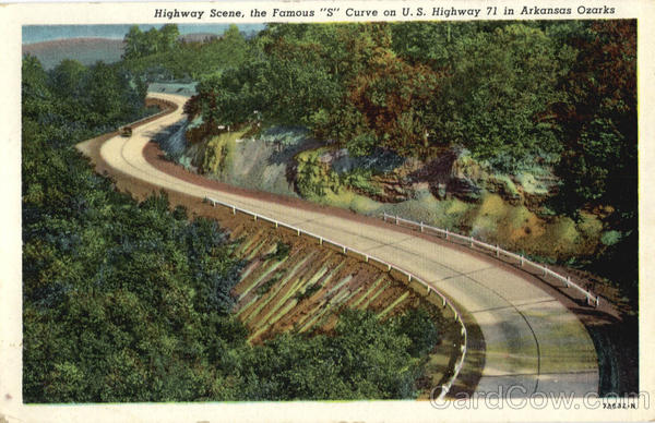 Highway Scene, the Famous "S" Curve on U. S. Highway 71 in Arkansas Ozarks