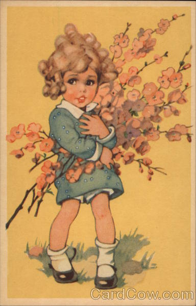 Young Girl Carrying a Bunch of Blossoms