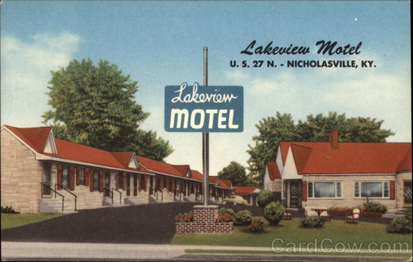 Lakeview Motel U.S. 27 N. - Nicholasville, Ky. - Phone 162 20 re-decorated units - tile baths & showers Mr. & Mrs. M. Cable, Owners & Managers Central heating system - air conditioning optional American Motel approved - commercial rates restaurant - beauty shoppe picnic grounds with open fireplace Television - Bridal Suite |