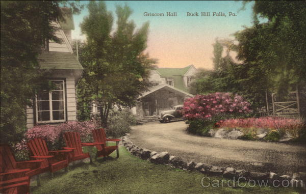 Front: Griscom Hall Buck Hill Falls, Pa. Back: 1-9, 1939. 3. HAND-COLORED July at one end of Ball were these chairs which guat demiknade for tow uphori engaged were un-bath a eum PHOTO BY J. F. KIRKTON