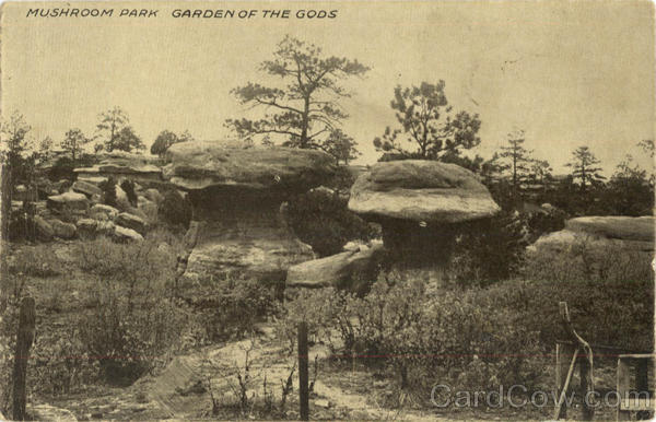Front: MUSHROOM PARK GARDEN OF THE GODS Back: Published by F. K. Conway, Colorado Springs, Colo. DOMESTIC: FOREIGN: TWO CENTS