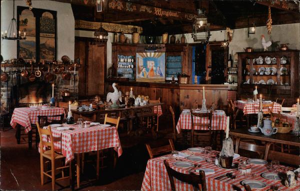 | "A bit of Old France". French onion soup, choicest steaks, chicken Barbara, Le Diner Mysterieux prepared by master French chefs. Hot popovers and brioche. Crackling log fires in winter, breeze-swept terraces in summer. Open every day of the year 12:30 to 10:00 pm. Nine miles from D.C. Marjory Hendricks, Owner-Manager |