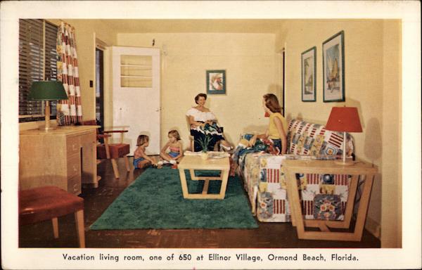 Vacation living room, one of 650 at Ellinor Village, Ormond Beach, Florida.