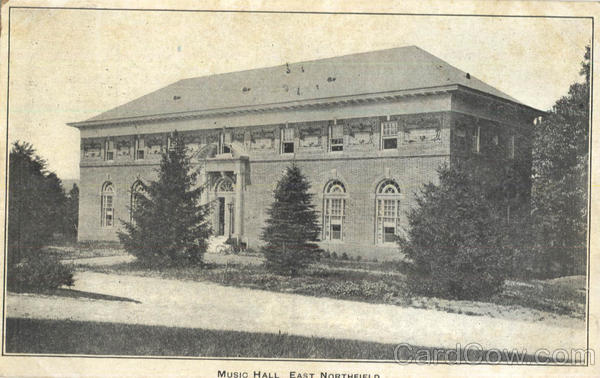 Front: MUSIC HALL EAST NORTHFIELD Back: ORTHFIELD! Fest CARD 200 I had a room this building for a little while. Hope you getting along well. any. Very truly yours, 22. D.J. Billings. Mr Rowland Hill, repton, Mass.