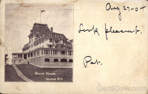Front: Aug 27-01 face pleasant EO 02 Pare 2012 OCEAN HOUSE Watch Hill Back: 2_33 ****** WESTER Real 291& マダラ TIAM АМ ICH HILLS ***** Ni's. Mr. Willemin Denson naple st Torwich CA.