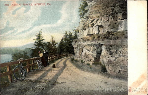 Front: THE TURN O'ROCKS, ATHENS, PA. 1783 Back: Post Card . One Cent for United States, and Island Possessions, Cuba, Canada and For Foreign. A. C. Bosselman & Co., New York. Made in Germany,