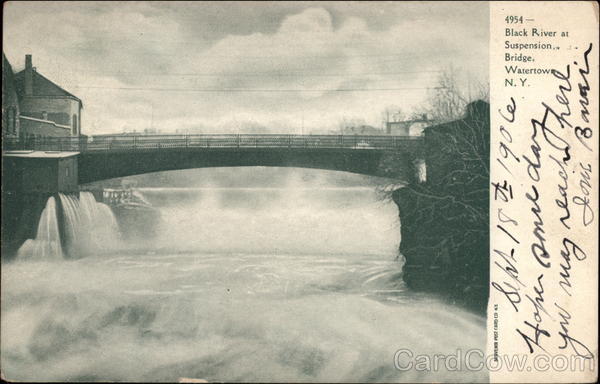 Front: SOUVENIR POST CARD CO N.Y. N. Y. Sept. 187 goce Hoher someday reachel Bridge, 4954 Suspension, Black River at you may lon Brain Back: 50 Post Cards th
