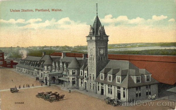 Front: Union Station, Portland, Maine. 220838 A4 A Back: 73 The Valentine-Souvenir Co., New York. Printed in U. S. A. THROUGHOUT SUPERIOR QUALITY FAMOUS WORLD 2.50 Address Only