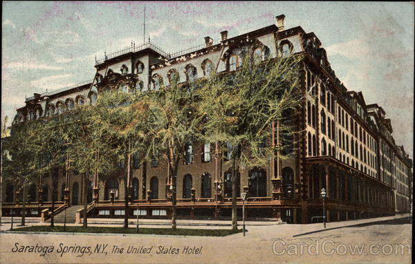 Front: Saratoga Springs, N.Y, The United States Hotel, Back: 2 - One Cent for United States, and Islano Possessions, Cuba, Çanada and ROBSON & ADEE, PUBLISHERS, SARATOGA. SPRINGS, N. Y. MADE IN GERMANY. N: 3390.