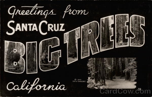 Front: Greelings from SANTACRUZ BIGIRLES JUMBO California © 1940 ZAN of TAMALPAIS 19 Back: r-Kodak PLACA -- Paper -