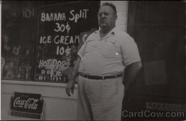 Front: 10 Splil BANANA 30¢ ICE GREAM C 10¢ HOT DOO 771711 DRINK SAN FELICE Coca-Cola FOUNTAIN SERVICE Back: Kodak SNAP -- Paper Dan Smide btibl Olio Sunville