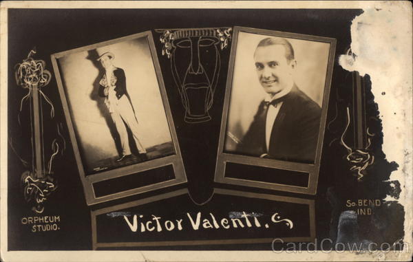 Front: 16 AVIE BAVIER RAND ORE ORPHEUM STUDIO. Victor Valenti,s So. BEND IND. Back: SA 2 STAMP To Erna Alma a Real Girlands A Fire Singers as well. Wie Souson de 1927 of
