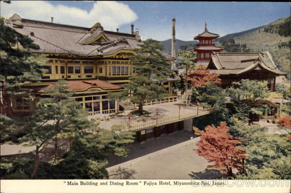 "Main Building and Dining Room " Fujiya Hotel, Miyano a Spa, Japan.